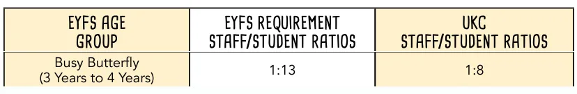 We believe in quality over quantity! That’s why, while EYFS guidelines recommend a 1:13 ratio, we maintain a 1:8 ratio, which is well above the standards. This ensures more personal interaction, greater emotional safety, and the space to support each child’s unique growth.